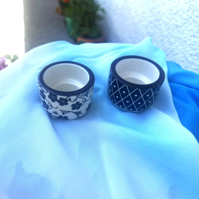 Красив комплект 2бр. керамични свещници, ръчно изработени в характерния стил на синия порцелан, на изключително достъпна цена!