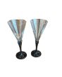 Елегантен комплект от 2 броя чаши за шампанско, от нежно светло синьо стъкло, във формата на лале