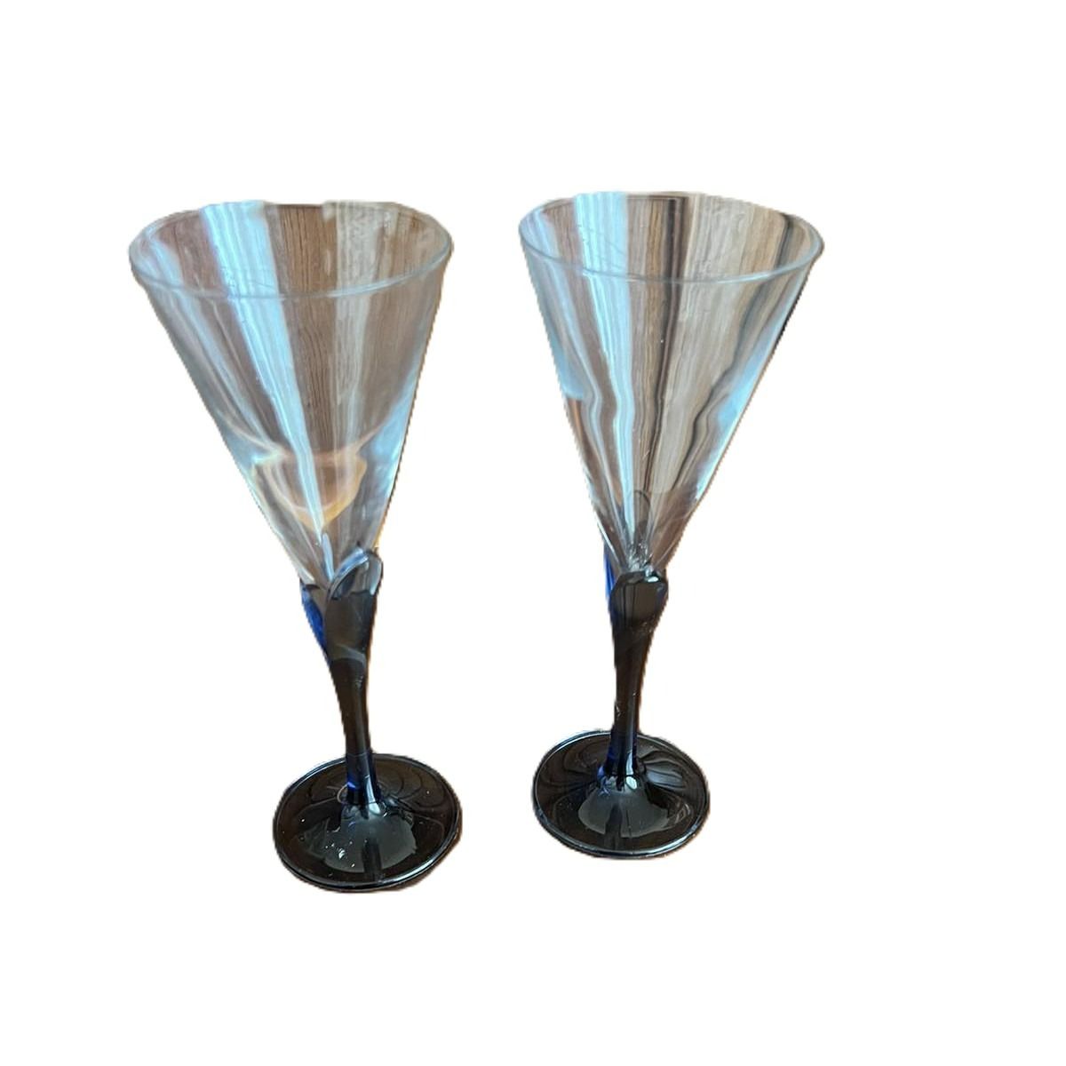 Комплект 2 бр. чаши за шампанско , светло синьо стъкло, лале
