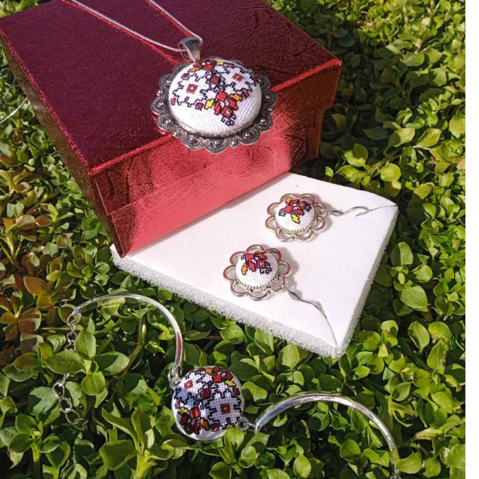Комплект бродирани бижута,Цветето на живота - колие, гривна, обеци