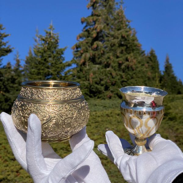 Сребърна чаша, изработена от най-висока проба сребро - 999,9, позлатена с 24 карата злато, Чашата на тракийската принцеса