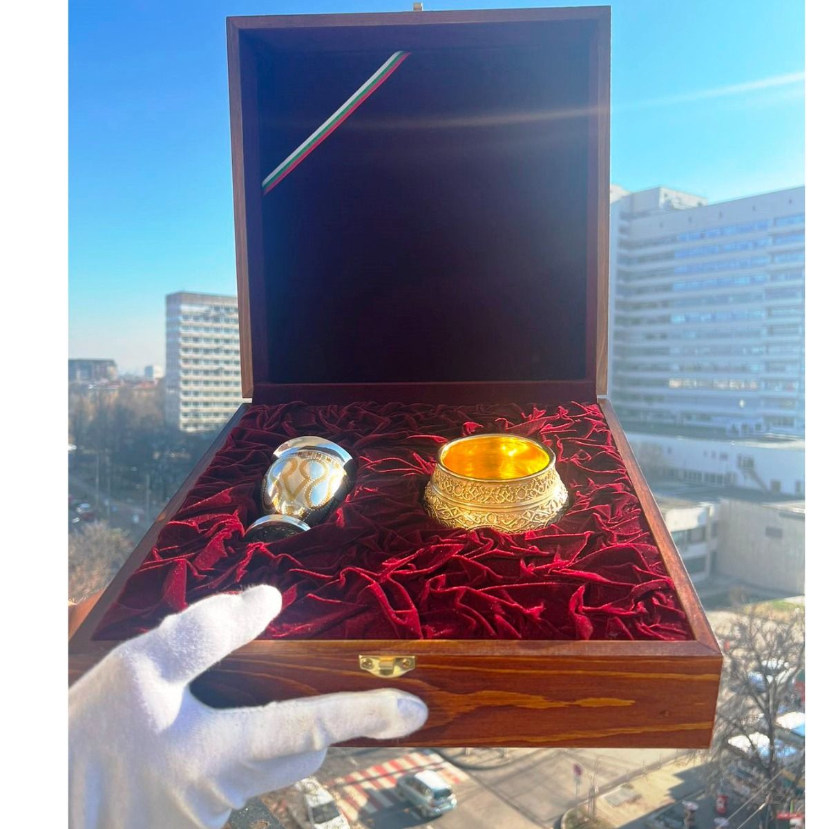 Комплектът царски чаши "Величие и красота" се състои от реплика на златния бокал на хан Аспарух и сребърната чаша на тракийската принцеса