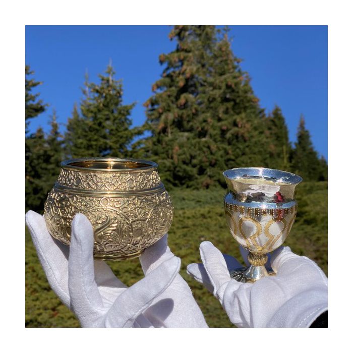 Комплект царски чаши "Виличие и красота" - състои се от царския бокал на хан Аспарух и сребърната чаша на тракийската принцеса