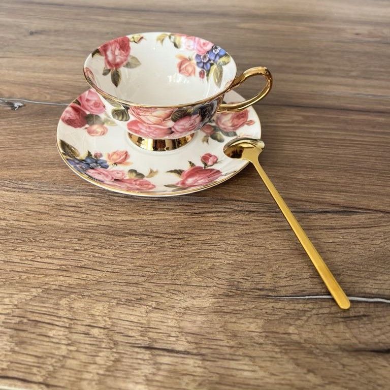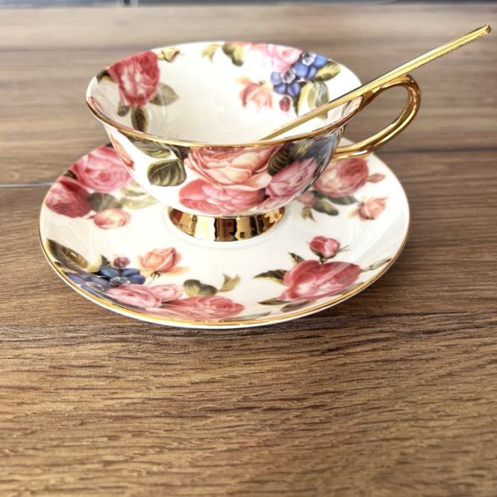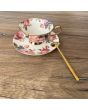 Рози на мечтите - комплект чаша, чиния и лъжица от костен порцелан
