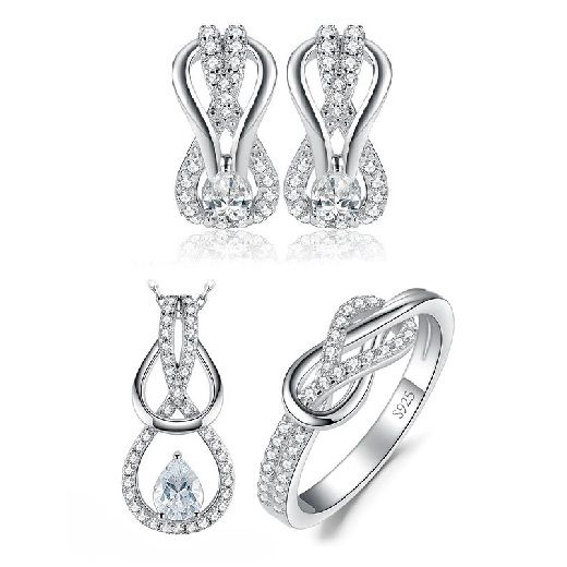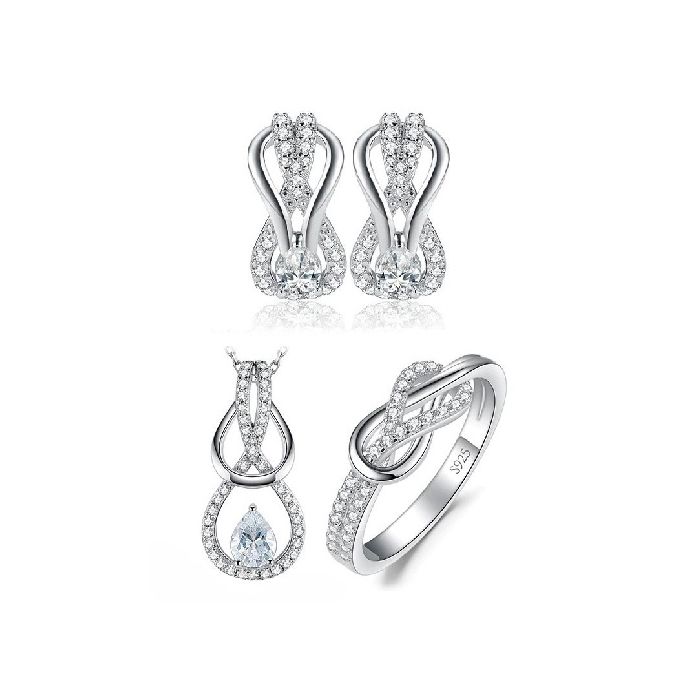 Стилен комплект, състоящ се от колие и обеци от масивно сребро 925 с диаманти и пръстен с бели цирконии. Това е скъпоценният камък символ на любовта, подкрепящ дълголетните връзки и взаимотношения между двама души. Внася яснота в живота, осигурява изобилие и носи кураж за своя притежател. Красивият дизайн на бижутата им придава изключително великолепие и ги превръща в идеалния романтичен подарък.