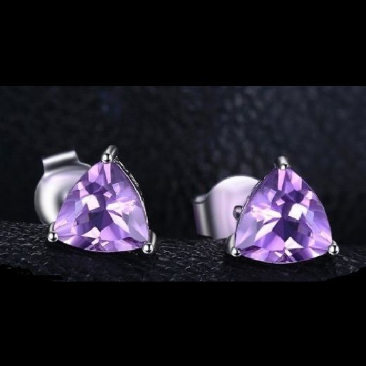 Обеците са с 1,4 карата естествени аметисти и са с размер 0,6см. всеки. Размер на обеците: 0,7см. х 0,7см. Тегло: 1,1гр.