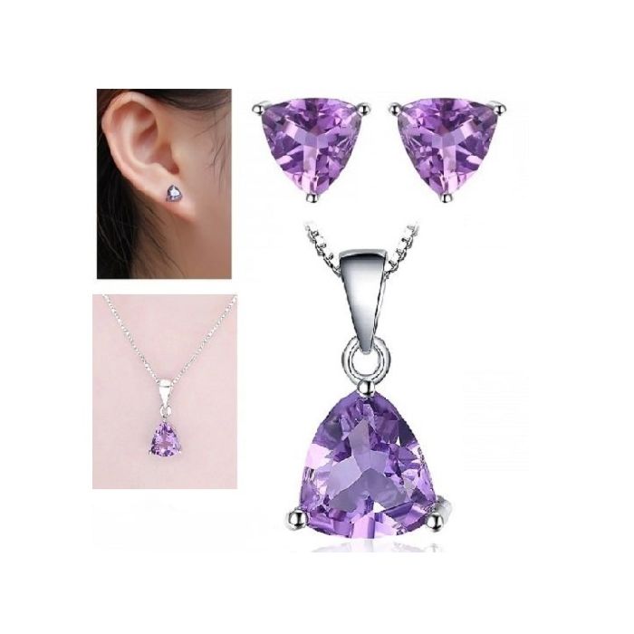 Комбинацията между стилния дизайн на всеки елемент от комплекта и ослепителният блясък на лилавия аметист, създават необходимата за всяко елегантно бижу хармония. Изберете скъпоценният камък, с който ще обгърнете днешното щастие!