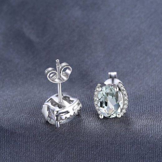 Обеците са с 2,3 карата естествени аметисти и са с размер 0,8см. х 0,6см. Размер на обеците: 1,0см. х 0,8см. Тегло: 2,5гр.