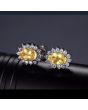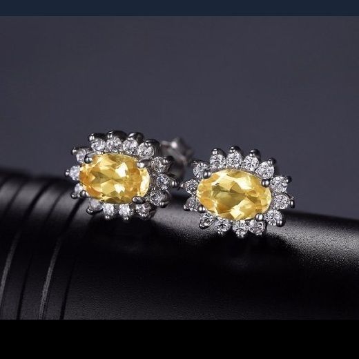 Обеците с естествени цитрини са 1,2 карата и са с размер: 0,4см. х 0,6см. Размер на обеците: 1,1см. х 1,1см. Общо тегло: 2,2гр.
