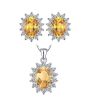 Комбинацията между стилния дизайн на всеки елемент от комплекта и ослепителният блясък на естествения цитрин, създават необходимата за всяко елегантно бижу хармония. Изберете скъпоценният камък, с който ще обгърнете днешното щастие!