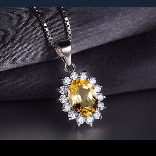 Колието с естествен цитрин е 1,8 карата и с размер 0,9см. х 0,8см. Размер на висулката 1,9см. х 1,1см. Дължина на верижката: 45см. Тегло: 3,2гр.