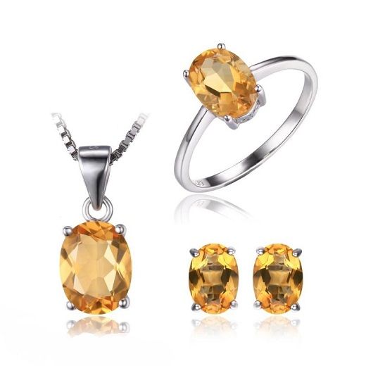 Комбинацията между стилния дизайн на всеки елемент от комплекта и ослепителният блясък на естествения цитрин, създават необходимата за всяко елегантно бижу хармония. Изберете скъпоценният камък, с който ще обгърнете днешното щастие!
