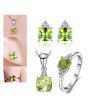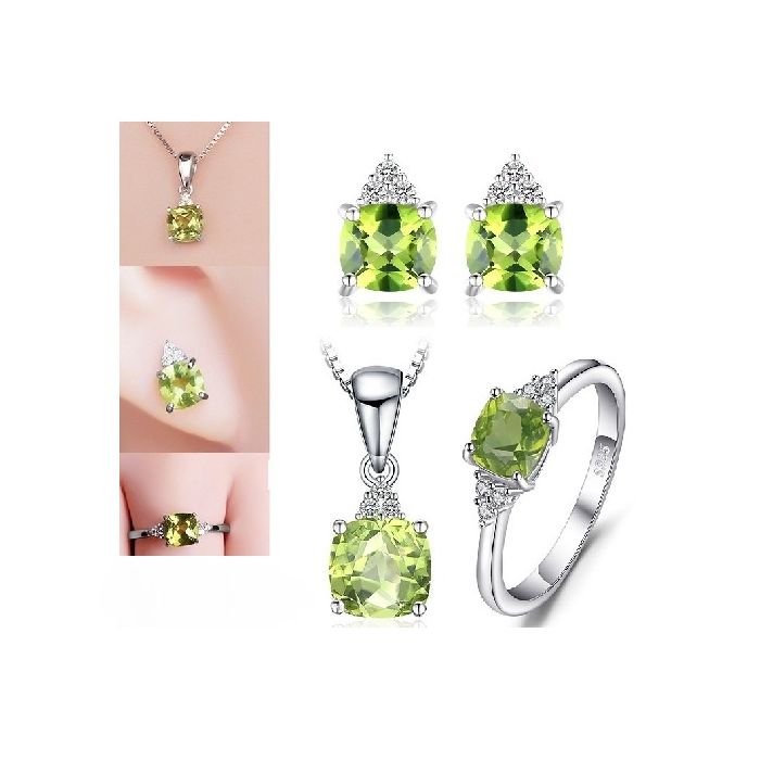 Комбинацията между стилния дизайн на всеки елемент от комплекта и ослепителният блясък на естествения зелен перидот, създават необходимата за всяко елегантно бижу хармония. Изберете скъпоценният камък, с който ще обгърнете днешното щастие!
