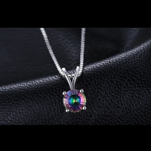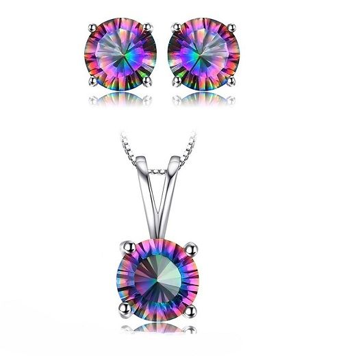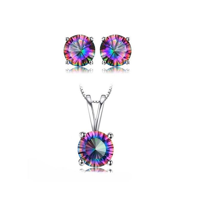 Стилен комплект, състоящ се от колие и обеци от масивно сребро 925 с 2,9 карата естествени топази с цветовете на дъгата. Познат като камъкът на мъдростта и духовната сила, топазът има способността да привлича богатство и провидение свише към своя притежател. Възпяван от поетите и любимец на аристократите, скъпоценният камък от векове предизвиква възхищението на хората. Чилийският поет и носител на Нобелова награда за литература Пабло Неруда с възхита споменава в произведенията си: ”Докоснеш ли топаз, топазът те докосва: разлива топлина в кръвта, като възкръснал грозд в гъсто вино.“