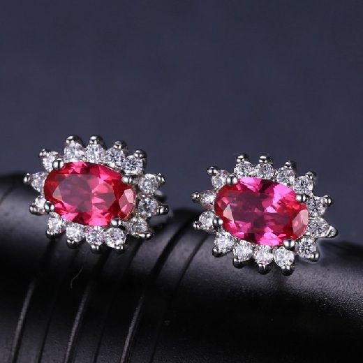 Обеците са с 1,5 карата рубини и са с размер 0,6см. х 0,4см. Размер на обеците: 1,1см. х 0,7см. Тегло: 2,4гр.
