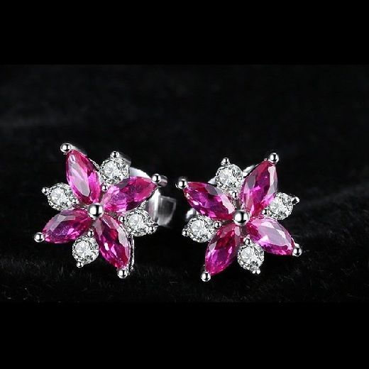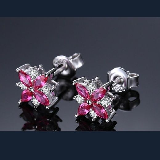 Сребърен комплект с рубини цвете.