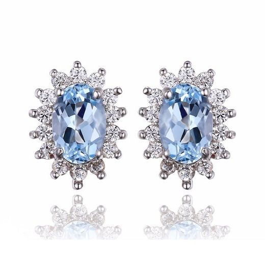 Обеците са с 2,2 карата топази и са с размер 0,6см. х 0,4см. Размер на обеците: 1,1см. х 0,7см. Тегло: 2,4гр.