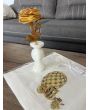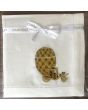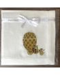 Покривката е изработена от 100% лен, невскабродерия със златни и копринени конци, размери 40 х 40 см