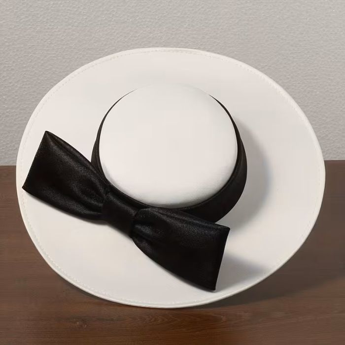 Кралица - аристократична бяла шапка с черна панделка