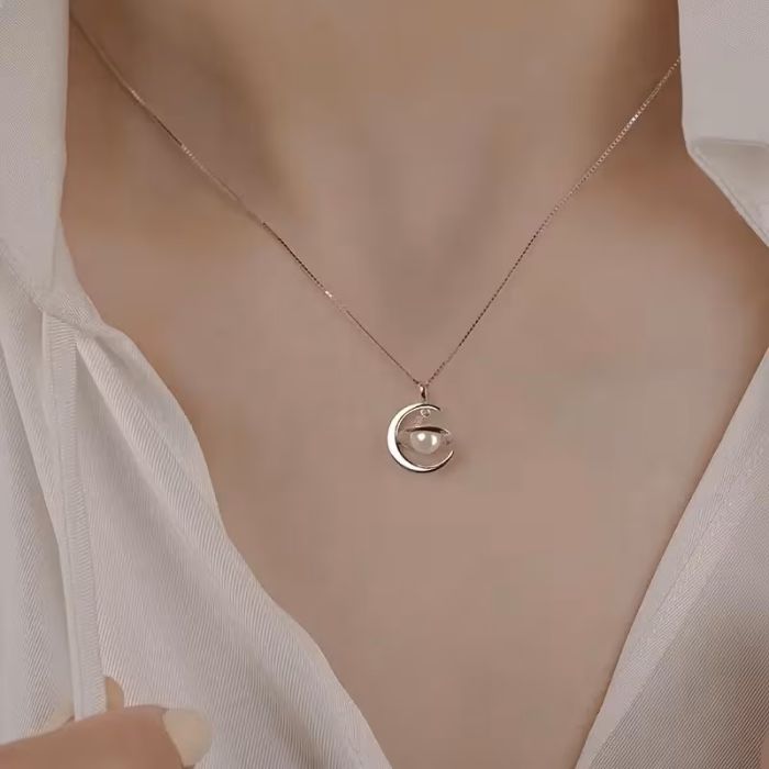 Красотата на луната, сребърно колие с естествена перла