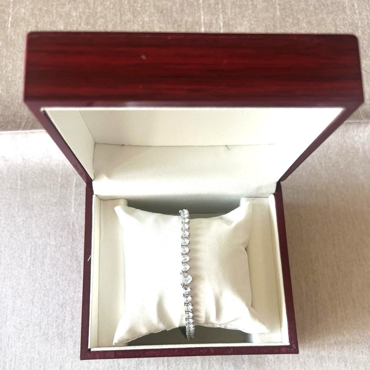 Гривната е изработена от сребро и кристали, високо качество, във формата на сърца