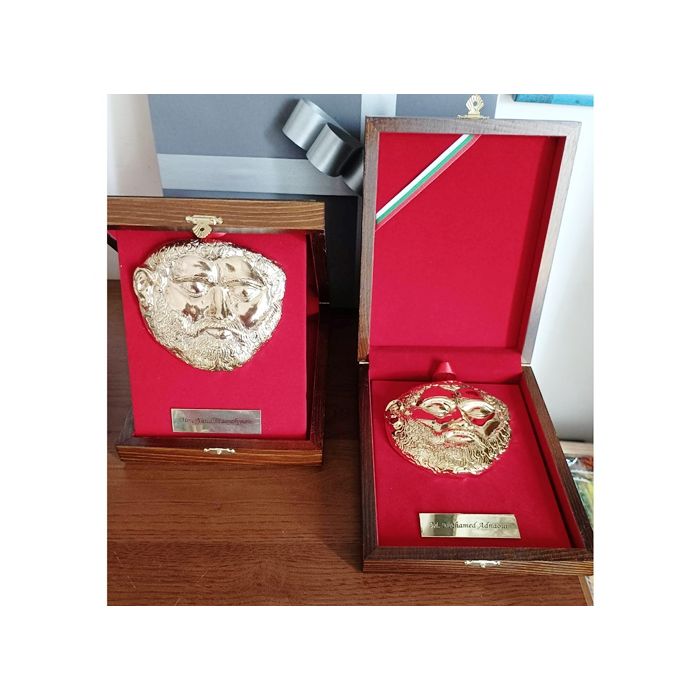Кутията е с размери 17 см х 23 см. Кутията е тапицирана с кадифе - ярко червено, бордо или тъмно синьо /в зависимот от наличните количества в офиса/