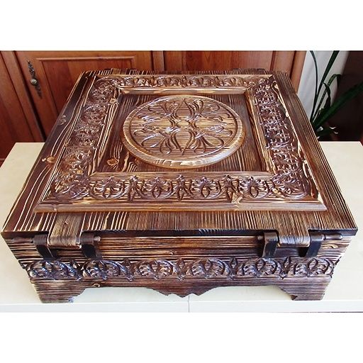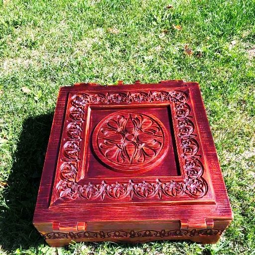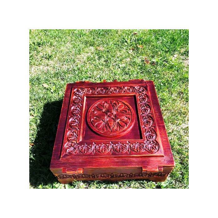 Уникална тапицирана кутия, изработена от естествено дърво, дърворезба