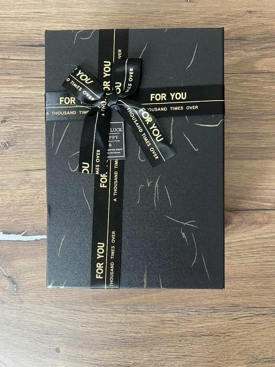 Луксозна картонена кутия за подарък с панделка, For you, черно и златно