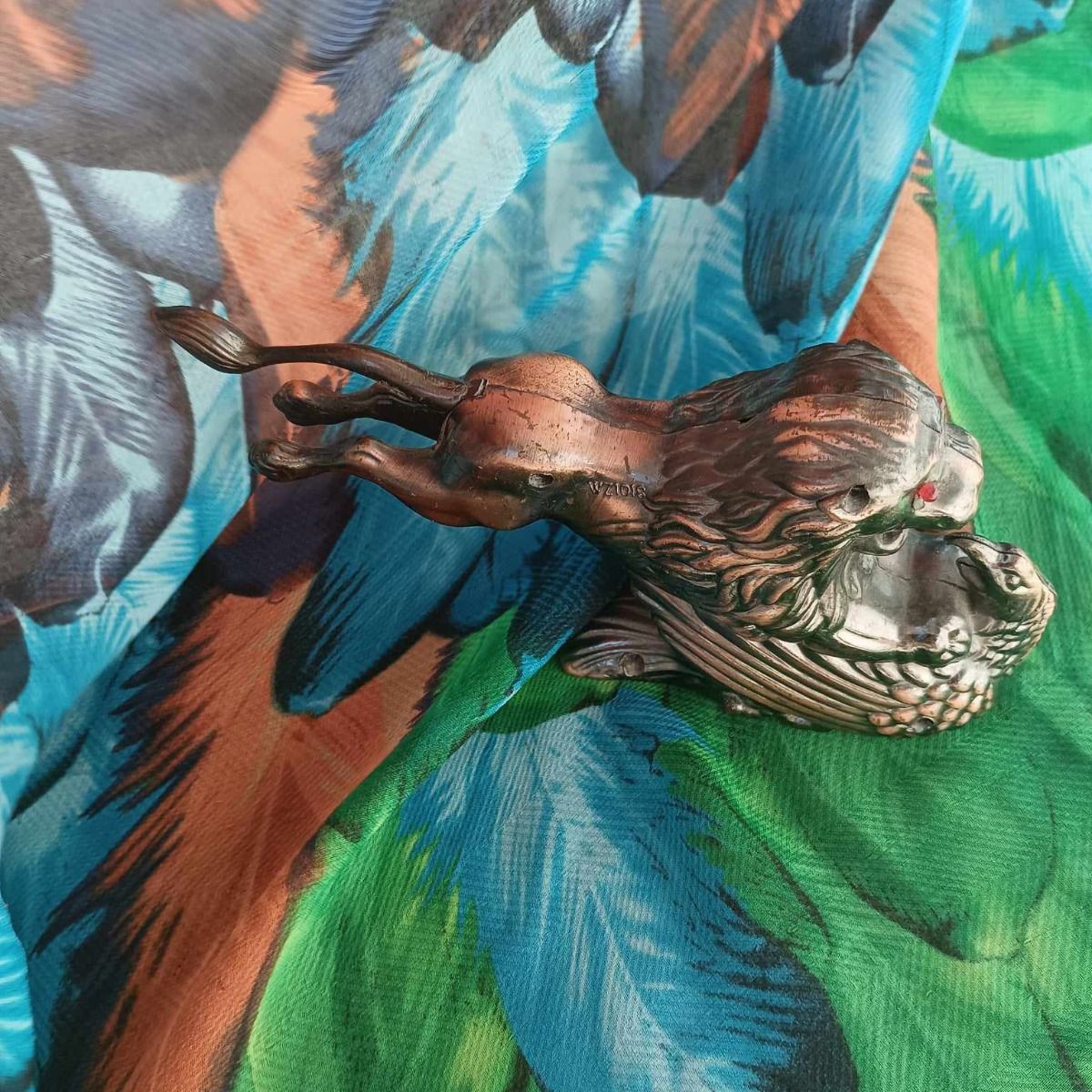 Малката пластика е изработена като настолна запалка. В решителен двубой, цар Лъв заявява своята сила и мощ над орела.