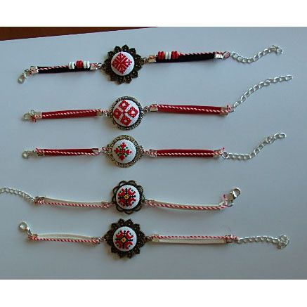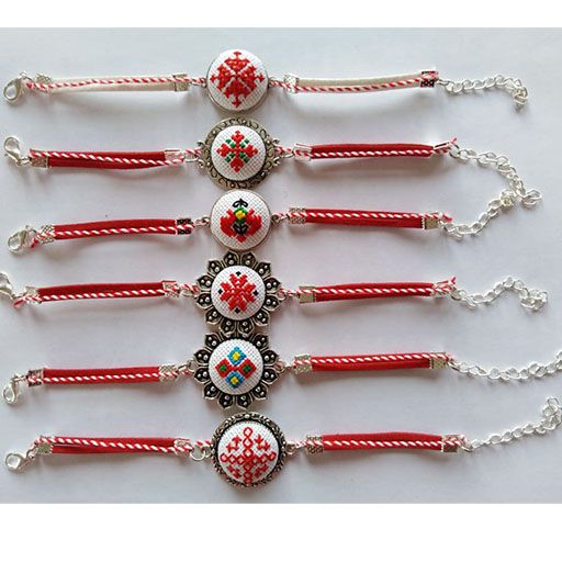 Ръчно изработени мартеници, гривни с бродирани елементи от българската шевица