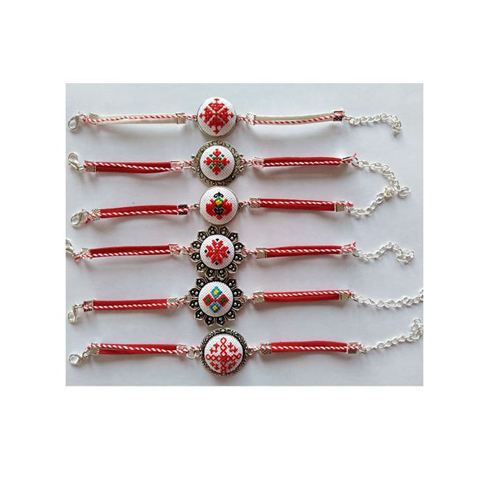 Оригинални мартеници, ръчно изработени като гривни с мотив от българска шевица, ръчна везба