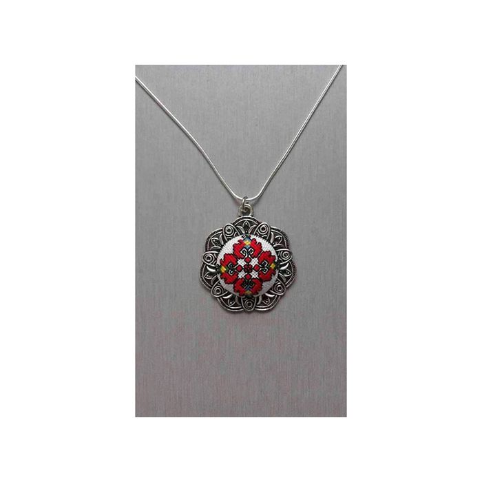 Цветна и ярка бродерия на красиво бижу с оригинален мотив! Страхотен подарък за жена с афинитет към нестандартното или за българка, живееща в чужбина, която иска да носи родното близко до сърцето!