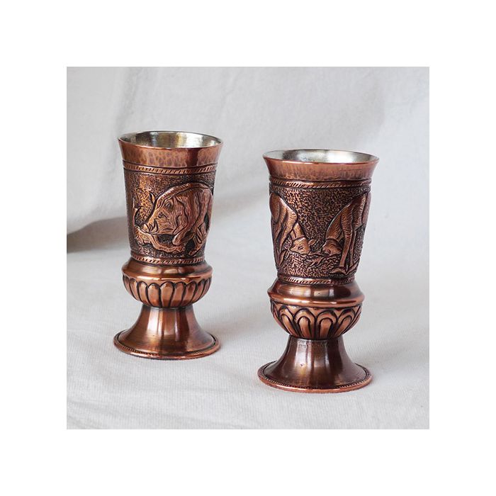Оригинална, типично мъжка чаша за типично мъжко питие! Чашата е ръчнно кована от мед с характерни ловни сцени на глигани.