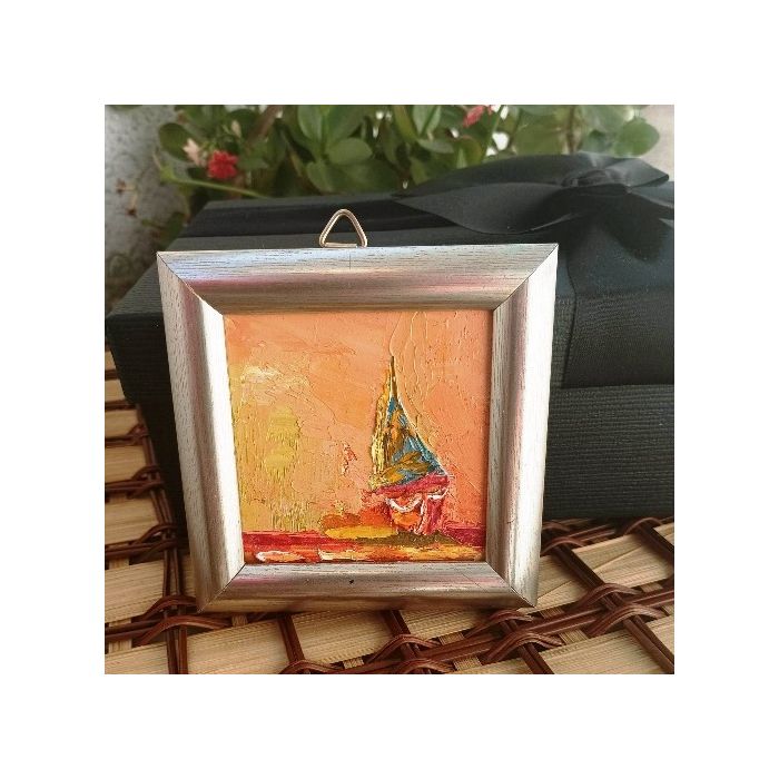 Лодката - порив и свобода, оригинална мини картина изработена с маслени бои.