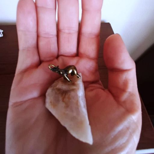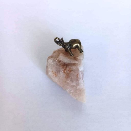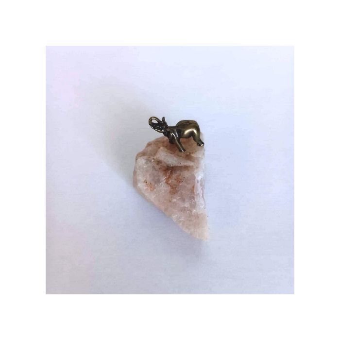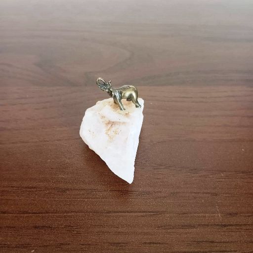 Миниатюра във формата на слон, изработена от месинг, върху естествен минерал