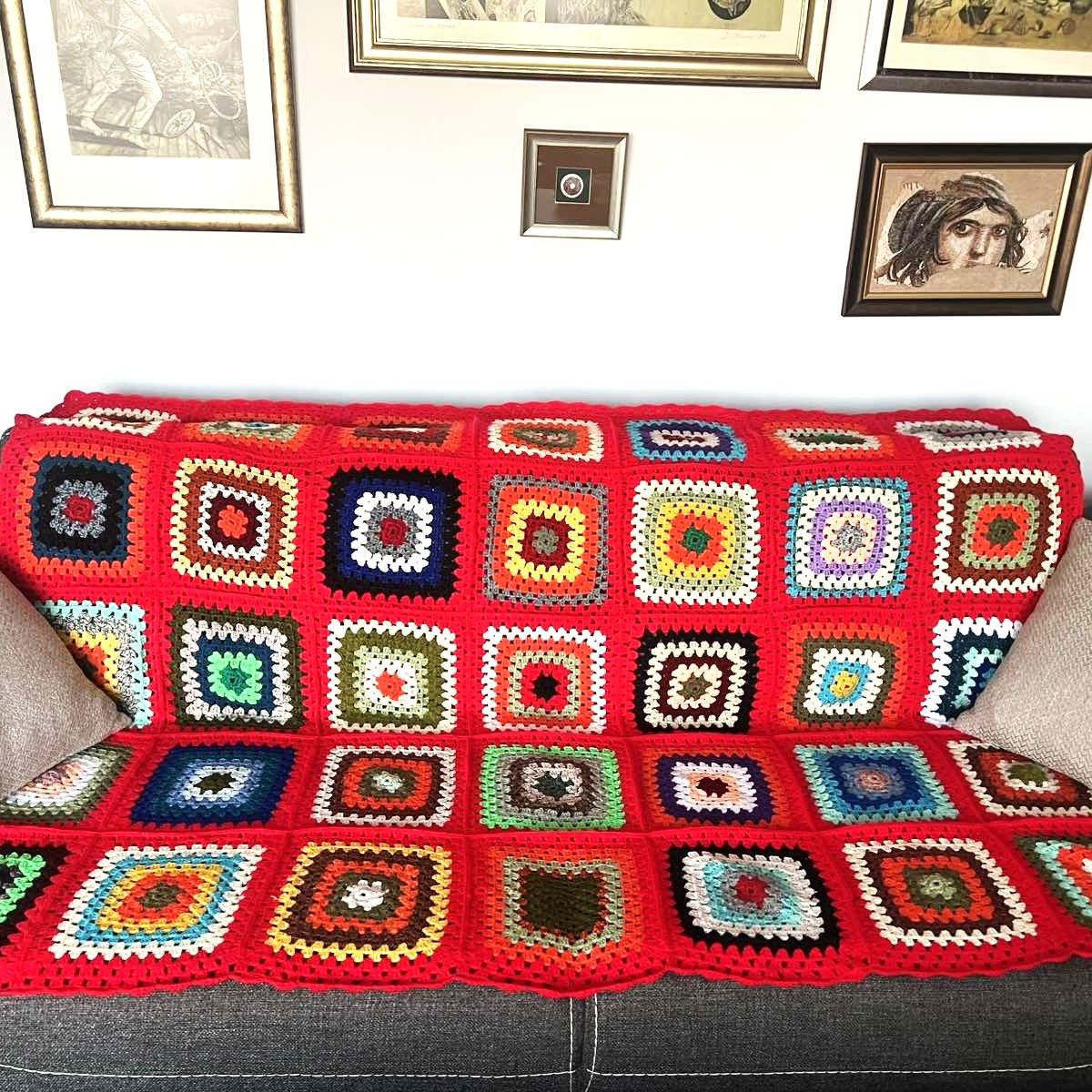 Многоцветно одеяло на квадрати, ръчно плетено на една кука - July morning.