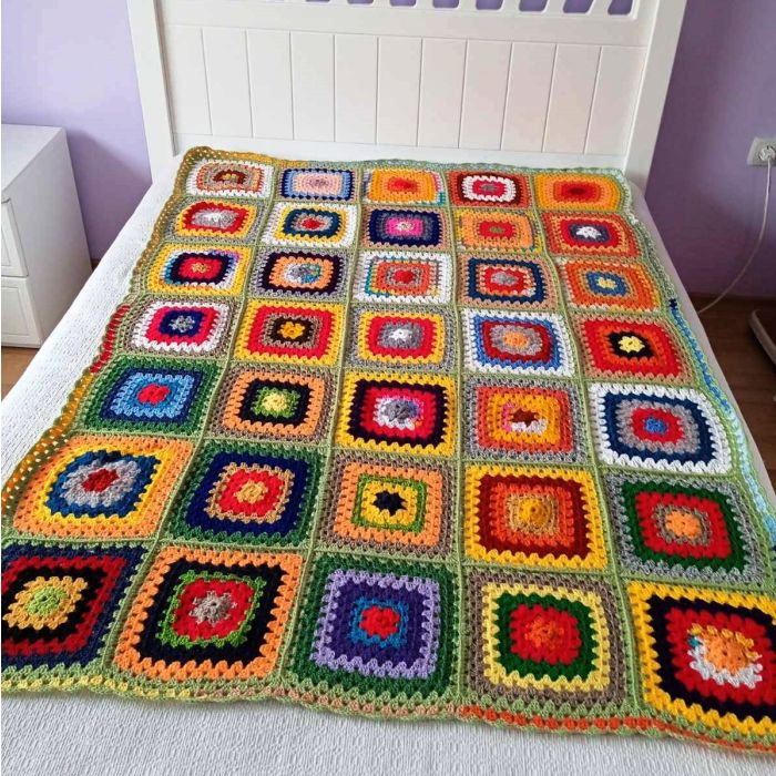 Ръчно плетено одеяло на една кука, бабини квадрати "Пролет"