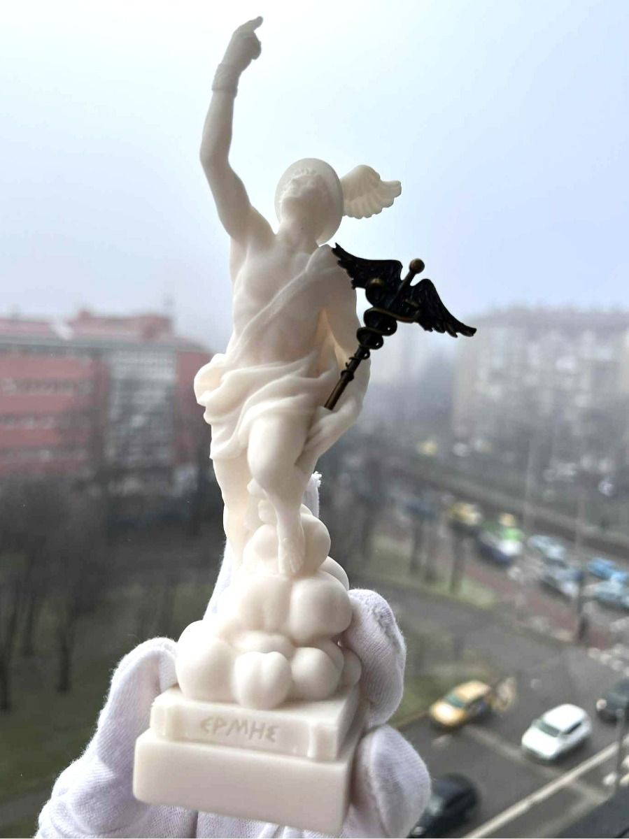 Музейна реплика, малка пластика на бог Хермес от алабастър