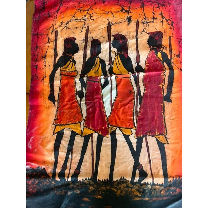 Оригиналната картина е плод на въображението и майсторстквото на кенийски художник от племето Масаи. Самата картина излъчва огненото очарование на Кения. На фона на залеза, масайските войни са готови за лов...или своя ритуален танц....
