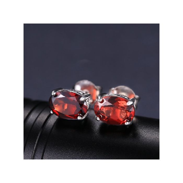 Стилни обеци от масивно сребро 925 с гранат. Червеният скъпоценен камък подпомага възвръщането на личната сила. Има способността да пречиства любовта, символизира първичния огън и сътворението на света от хаоса. Гранатът по чудесен начин ни учи да обръщане повече внимание на собственото ни енергийно поле, като нежно насочва вниманието ни към едно по-здраво вътрешно Аз.