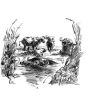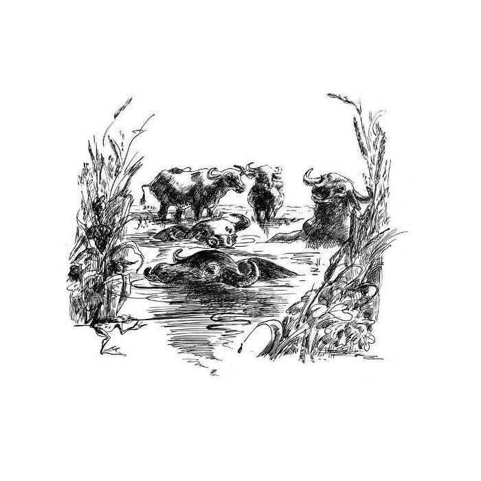 Майсторска графика, оригинал, изпълнена с много любов, настроение и чувство за хумор! Биволите се къпят в реката....Огромни, мощни, радващи се на слънцето и водата...истински!