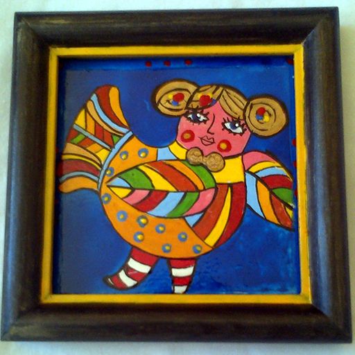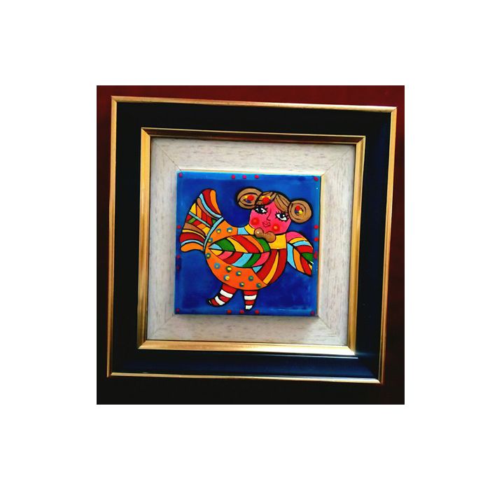 Рисувана керамична плочка с глазури. Керамиката се предлага с дървена рамка. Размерът на миниатюрата е 12 см на 12 см.Керамиката е уникат. Рисува се по поръчка. Срок на изпълнение 7 дни.