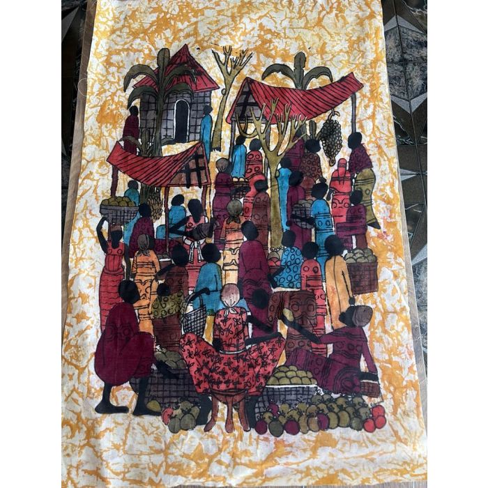 Оригиналната картина е плод на въображението и майсторстквото на кенийски художник от племето Масаи. Самата картина излъчва колорита, екзотиката и очарованиета на Кения. Вмасайското село има пазарен ден - на сергиите, по земята, на главите на масайскете жени са подредени едни от най-вкусните и екзотични плодове!
