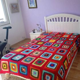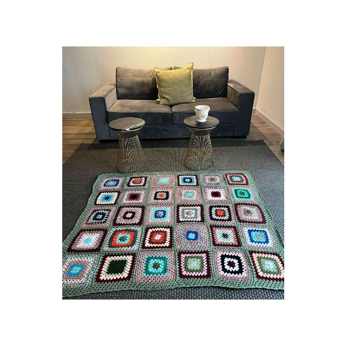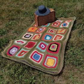 Многоцветно , ръчно плетено одеяло на една кука "Спокойствие". Одеялото се състои от 35 абсолютно различни квадрати пачуърк. Едно одеяло, което придава топлота, уют и спокойствие в дома ни.