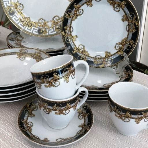 Сервизът се състои от 12 части за 6 човека. Всеки комплект от по 6 чинии и 6 чаши е в характерния дизайн, подчинен на основната идея - Versace Royal Gold