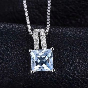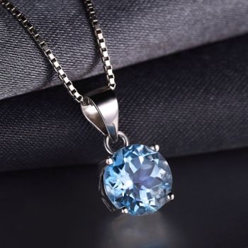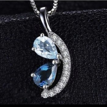 Сребърно колие със син топаз, обгърнат от естествени бели цирконии.