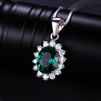 Сребърно колие с изумруд и бели цирконии с форма на звезда.
