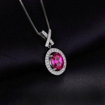 Сребърно колие с рубин, обгърнат от бели цирконии.