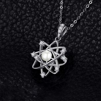 Сребърно колие с лотос, обграден от нежни бели цирконии.
