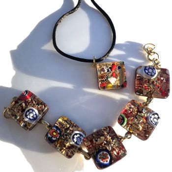 Богатство и изобилие, комплект от гривна и колие от цветно стъкло Valletta glass